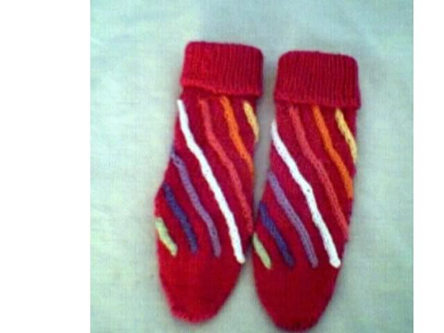 I accidentally found a finnish webpage with a pair of socks in this technique. What a dream to have both socks and mittens! The URL is http://www.novita.fi/ohjeet/kauneimmat_villasukat/index.html