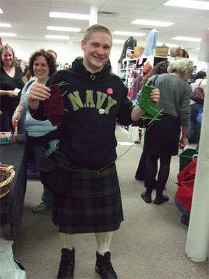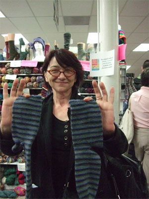 and finally, Aaron. Aaron stood up at Webs last year and said that he was only knitting one scarf. That he didn't believe that it was addictive, that he wasn't going to get sucked into it's evil web, and that he was not going to be a knitter. He was just going to knit one scarf. Yeah.