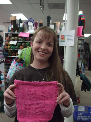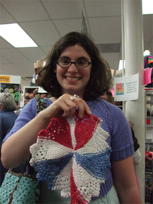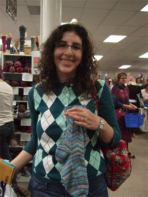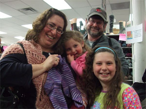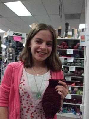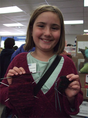 There were young knitters, Leah (almost 10), Emily (7) and Nicole (8), Emma (9) and Sarah (13). There was even a whole family of knitters (and one pre-knitter) Jonquil, Eliana, Talia (9) and Jeff.
