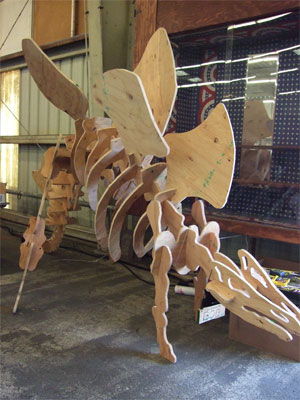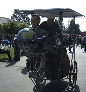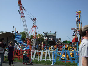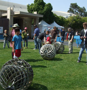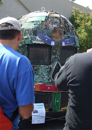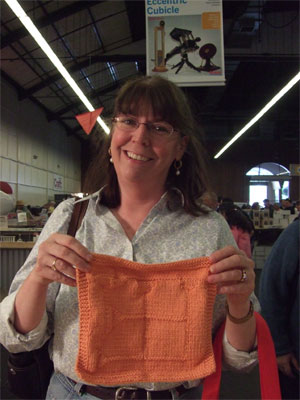 The next morning I got up and got in a car to go to San Mateo, where the Maker Faire was at. The Faire is a seriouly cool undertaking. It's just a whole fairgrounds of people....making. Making all sorts of stuff. Music, art, tools, sculpture, code, toys.... It was very, very brilliant to see knitting lumped in with that sort of crowd.