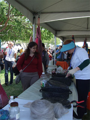 along with Ceallach Dyes, who was out in the sunshine, making what she makes, which is solar dyeing of yarn. (Beautiful yarn.)