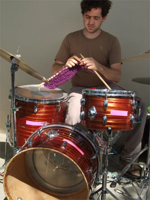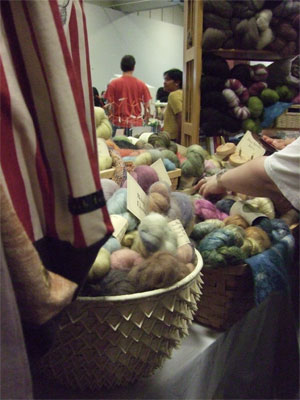 There was tons of fibre related stuff too. Aside from the free range knitters and spinners who were everywhere, there was this guy who was knitting and drumming at the same time, which was totally cool except he looked miserable.