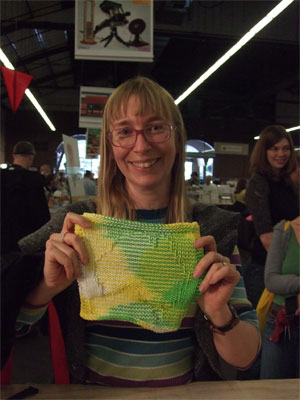 I saw a multitude of knitter/makers. Although they were a little hard to photograph, because there were these lights shining on me that were like looking into the sun.