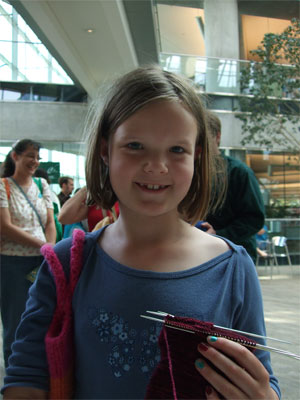 Tons of knitters, especially for Salt Lake City on a Sunday. There were young knitters, like Piper (7) Maya (almost 9) and bike riding Evelyn. (8)