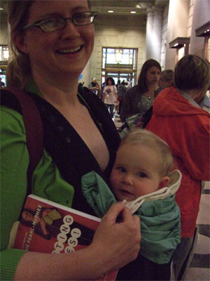 Knitters with babies, like Stacy with Zane, Amy with Abigail (but that's her daddy) and Katie with wee Aoife.