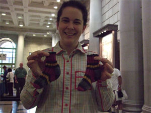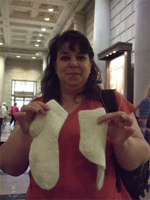 Sue came. You might remember Sue from last year, when she showed up with her yellow and red striped "sock of shame".... and this year felt compelled to bring me a sock with human dimensions, just to prove she'd gotten the hang.