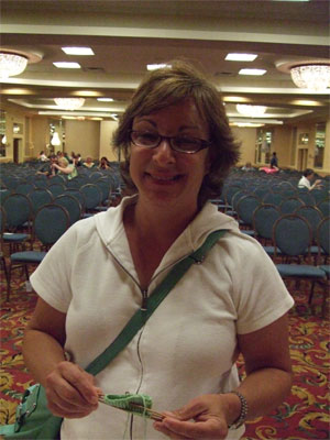 The knitter and her friends (Queen Clara of Knitters Review. and the sorceress Cat Bordhi) were talking about SSKs and no person around was trying to escape their circle of yarn or yawning, or even making jokes about how odd it was that three bright women could care this much about how loops of string looked and behaved. The knitter began to understand the magic of TNNA.