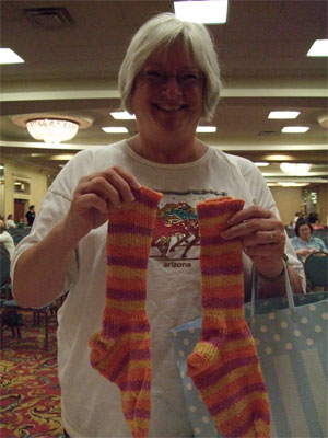 The Knit So Fine ladies held the sock.