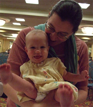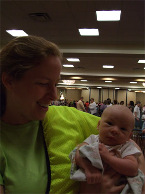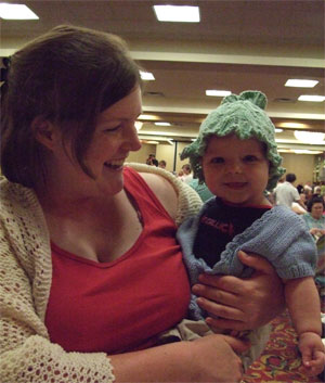 Oh, didn't want to miss this knitter hanging out on the side so her baby could roam. (He was very well behaved.)