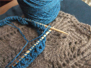 I am positive that this sucks. Today's contribution to the experience is not just unexpected work or financial outlay (we've adjusted to that) but the fact that the old furnace needs to be removed and severed into pieces small enough to exit the house. This is done with some kind of really, really big saw that isn't just loud enough to shake the house, but is so unspeakably loud that I am actually worried that it might shake some of the fillings out of my teeth. It is a noise so loud that even though my intellectual self is not frightened, my emotional self simply can't be convinced that I am not having an emergency. The result of this is that I alternately sit here knitting and being just fine (other than the fears for my dental work) and then periodically have to breathe deeply to avoid the urge to run screaming from the house because the part of my brain that's pretty darn primitive can't be convinced that a noise that big doesn't mean that I should run for my life before the herd of robotic evil T-rex's bursts out of the basement, murderous bloodlust in their LED eyes. (Yes, I do think that robotic T-rex's would be worse. Don't you?)