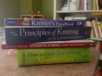 There are definitely others, but these are the ones that I know to be accurate and helpful, and that I turn to again and again when I come to the knitters version of an instruction like "blanch for three minutes" or "caramelize the onions." Solid books all, and they keep me from having the knitterly smoke detector go off.