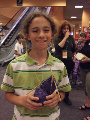 And there were a plethora of young knitters. Behold, the next generation, Sophie, Louis, Taylor and Teddy. (Click to make the small knitters bigger.) Note that the next generation has an even gender split.